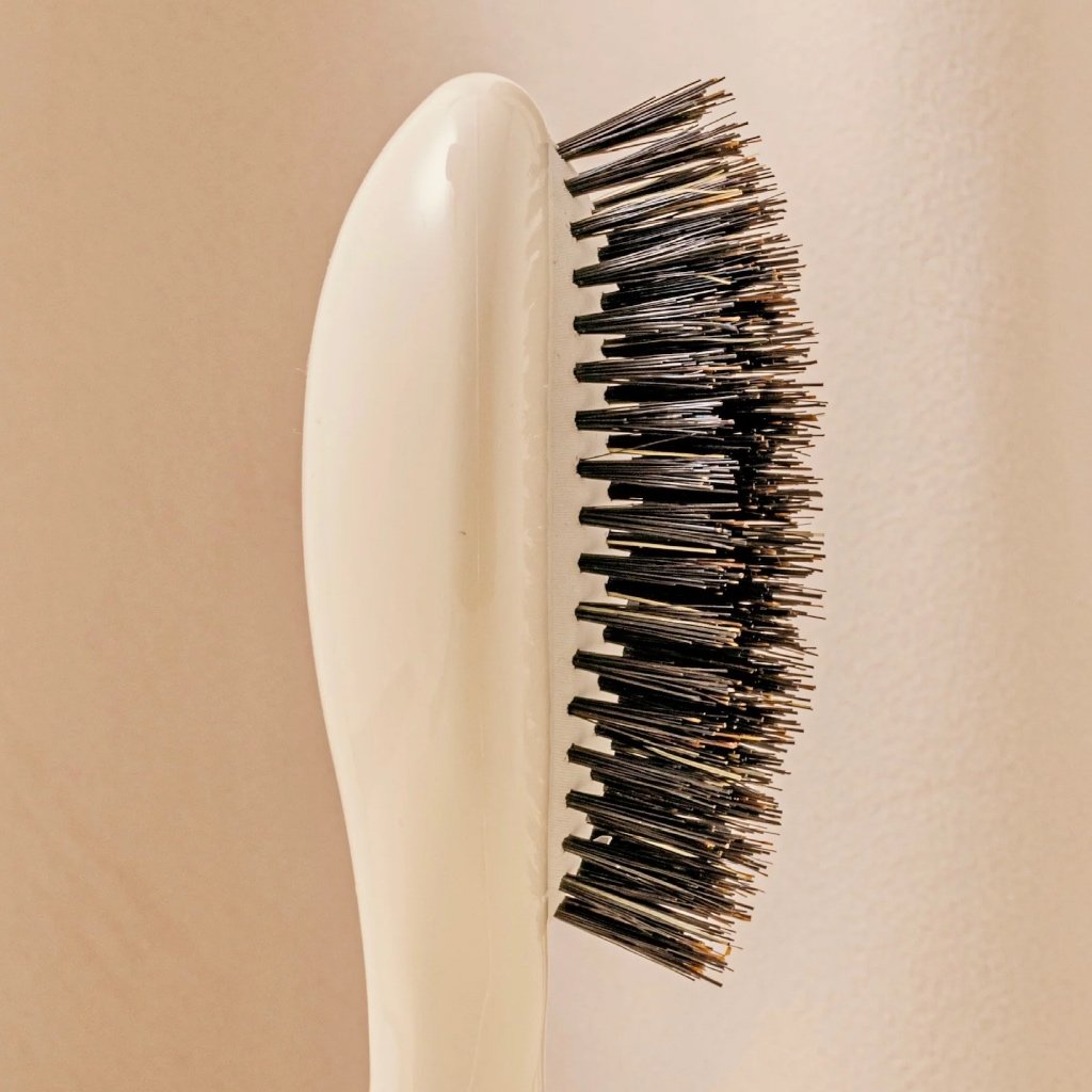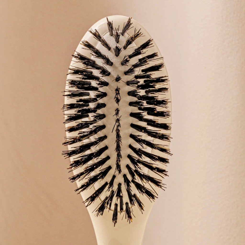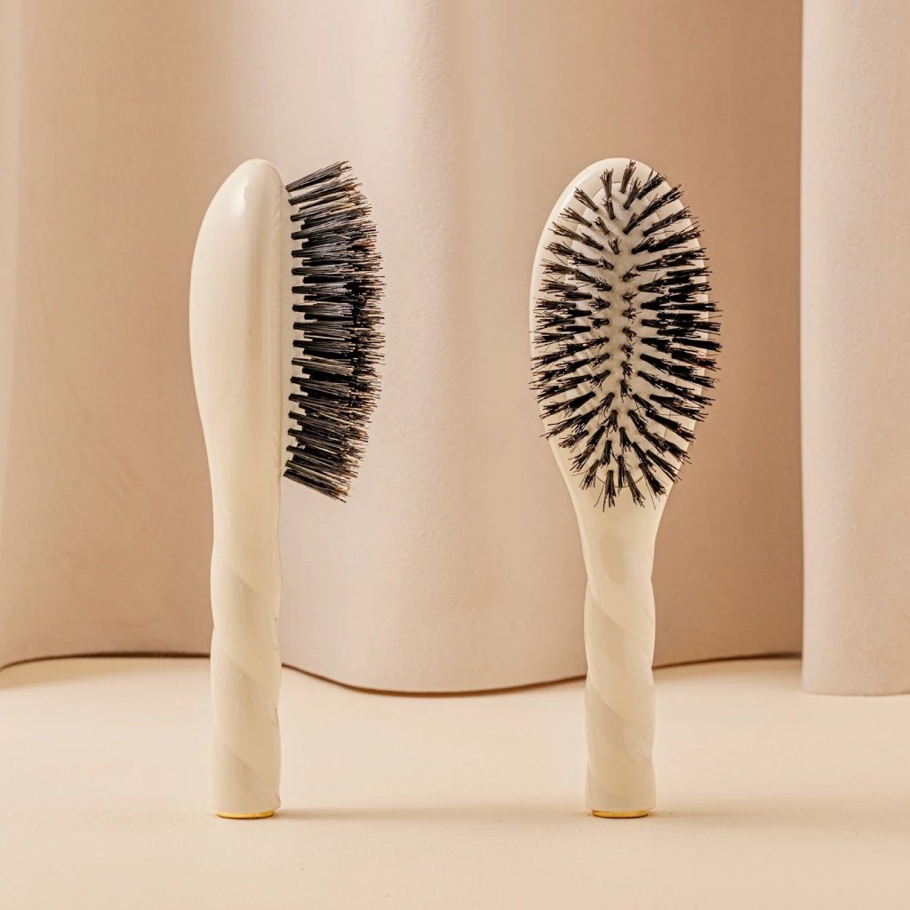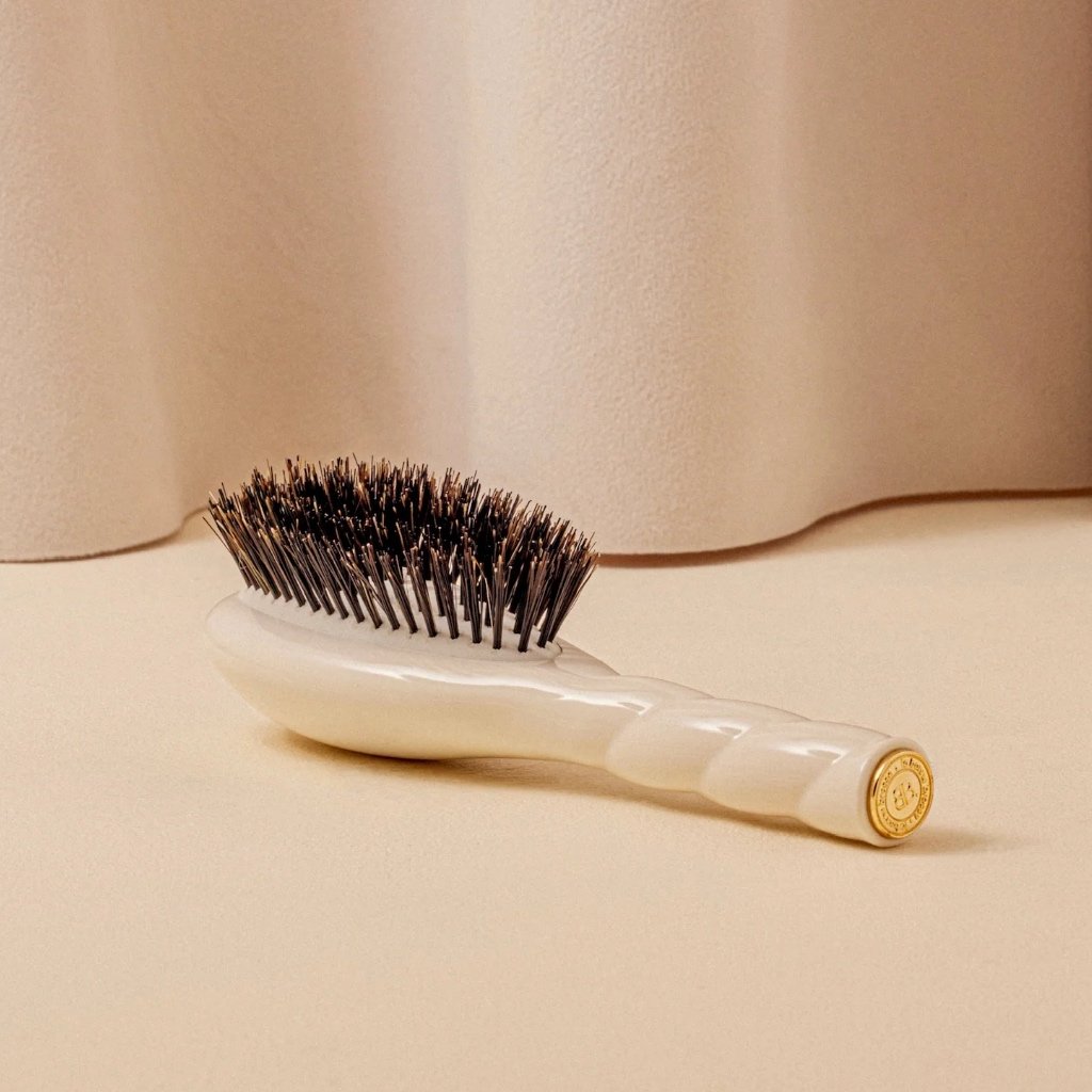 Luxusní kartáč pro péči o pokožku hlavy a vlasová vlákna, navržený tak, aby zlepšil lesk, rozložil přirozený kožní maz a posílil strukturu vlasu. Díky své velikosti je ideální pro cestování, kabelku nebo použití „na cestách“.