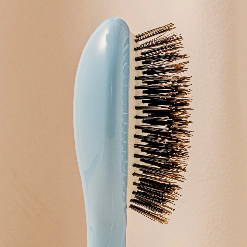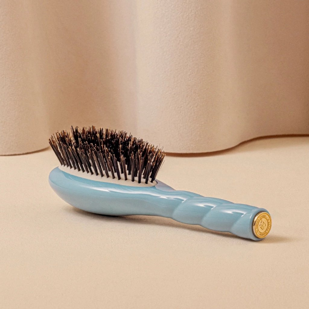 Luxusní kartáč pro péči o pokožku hlavy a vlasová vlákna, navržený tak, aby zlepšil lesk, rozložil přirozený kožní maz a posílil strukturu vlasu. Díky své velikosti je ideální pro cestování, kabelku nebo použití „na cestách“.