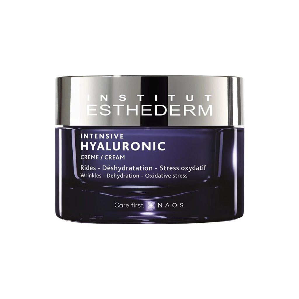 Krém Intensive Hyaluronic obsahuje patentovaný komplex tří různých typů molekuly kyseliny hyaluronové, které pronikají až do nejhlubších vrstev pokožky. Takto pleť hydratují a zároveň obnovují její kožní hustotu a podporují vlastní tvorbu kyseliny hyaluronové. Silně dehydratovaná, a tudíž žíznivá pleť, je tak konečně „napitá“, vláčná, zesílená a na povrchu jemná a hladká.